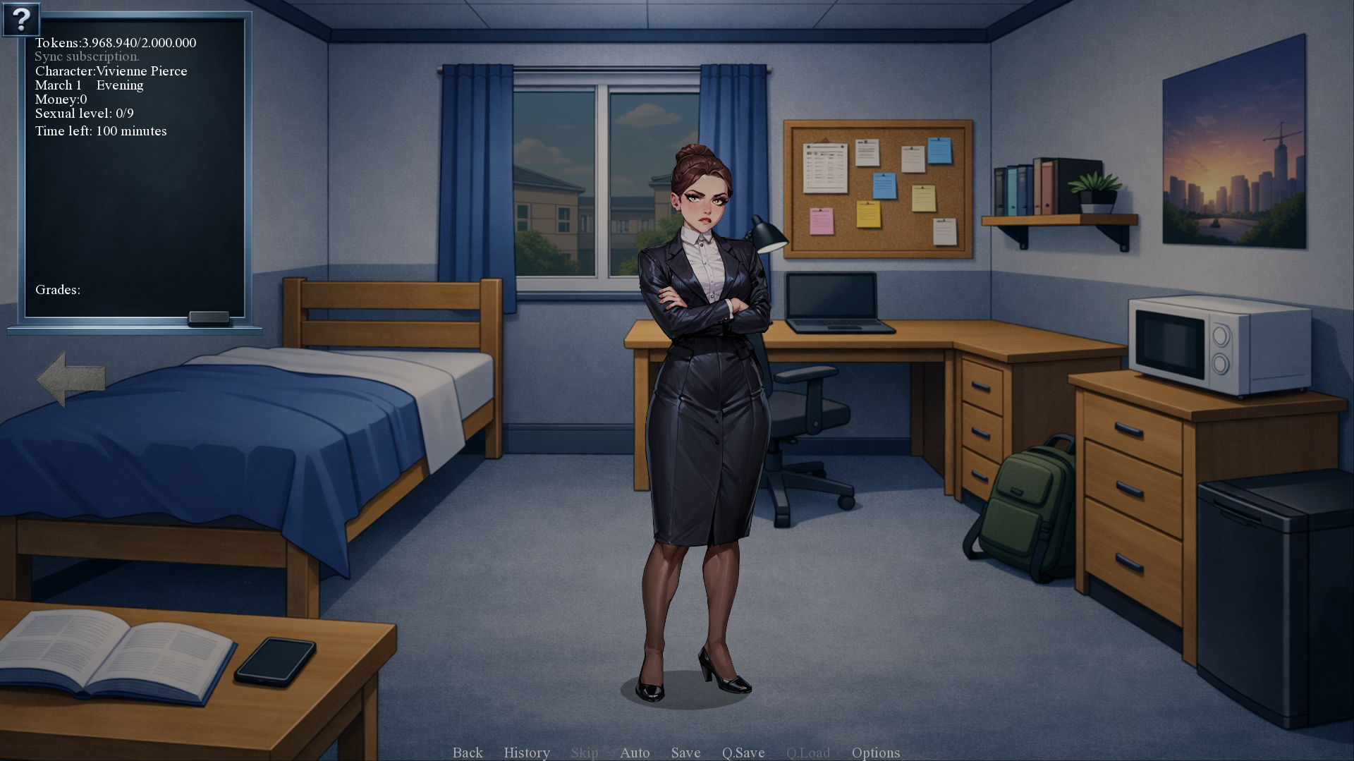 This is a trainer game about male student (18+) training his college teachers and classmates(all 18+). The game allows free user text input, so is pretty experimental. The trainable charachters are basically AI-chatbots integrated into the game, it allows the player to communicate with her using natural language.